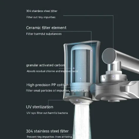 The Home Kitchen Filter with Activated Carbon and Ceramic Cartridge offers an effective solution for purifying municipal tap water. With a filtration life of 6 months and a purification flow rate of 2L/min, it ensures clean, fresh water for everyday use. The diatom ceramic composite cartridge efficiently removes impurities, making it ideal for a variety of water quality types. The filter operates within a temperature range of 5-38°C and a pressure range of 0.1-0.4Mpa, providing optimal performance for your kitchen needs.